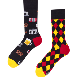 Mismatched-Socken sind absichtlich nicht identische Socken, die dennoch ein zusammengehöriges Paar bilden. Sie erzählen gemeinsam eine kleine Geschichte – zum Beispiel durch passende Motive wie Kaffee und Croissant oder Sonne und Mond. Meistens teilen sie eine ähnliche Farbwelt, ergänzen sich thematisch und machen so jedes Paar zu einem kreativen Hingucker. Mismatched-Socken stehen für Individualität, Humor und Freude an ungewöhnlichem Design.
