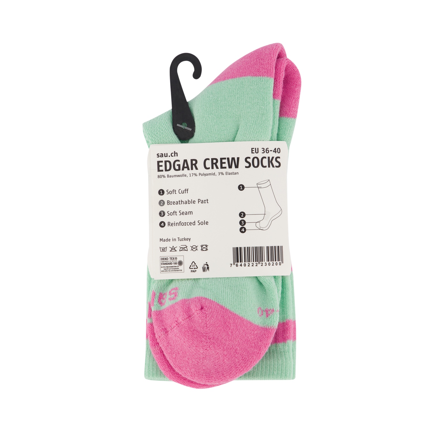 Unsere sau.ch Socken bringen Spass in jeden Schritt! Mit der süssen Saunase – ganz im Stil unseres kultigen Logos – stechen sie sofort ins Auge. Dank ihrer auffälligen Farben sind sie nicht nur ein Hingucker beim Sport, sondern machen auch im Alltag Freude.