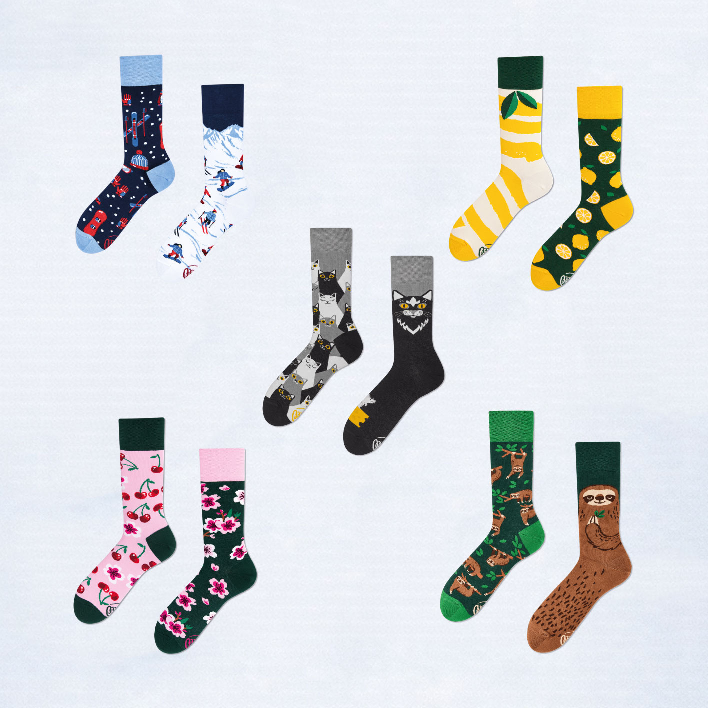 Gefertigt aus hochwertiger, atmungsaktiver Baumwolle sind Many-Mornings-Socken für ihren aussergewöhnlichen Komfort und ihre Langlebigkeit bekannt. Ob zu Hause, bei der Arbeit oder unterwegs – dieses Bundle ist ideal für alle, die ihre Persönlichkeit mit bunten, ungleichen Socken ausdrücken möchten.